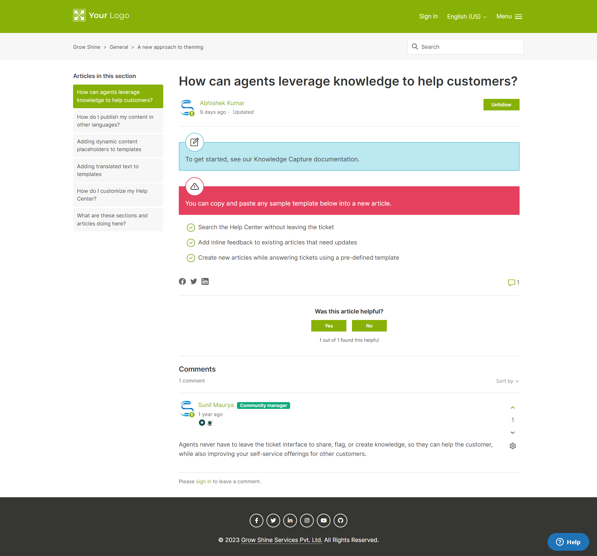 Also, Green comes with several setting options that will help you improve the user’s perception of your help portal. The theme options are user-friendly and require no special knowledge, adding value to a beautifully responsive Zendesk guide theme.